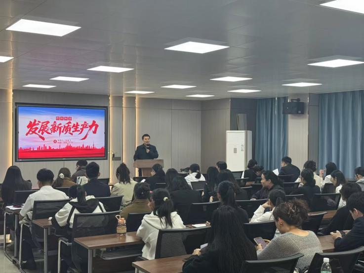 随后,党支部书记纪龙飞同志以《因地制宜发展新质生产力》为题,结合当前时代背景与研究生学习实际,深入解读了新质生产力的深刻内涵,为全体参会人员讲授了一堂生动的主题党课。他勉励各位党员同志要立足专业特色,发挥护理研究生的科研优势,将理论学习转化为实践动力,在未来的科研与临床工作中勇于创新,为推动高质量发展贡献青春力量。