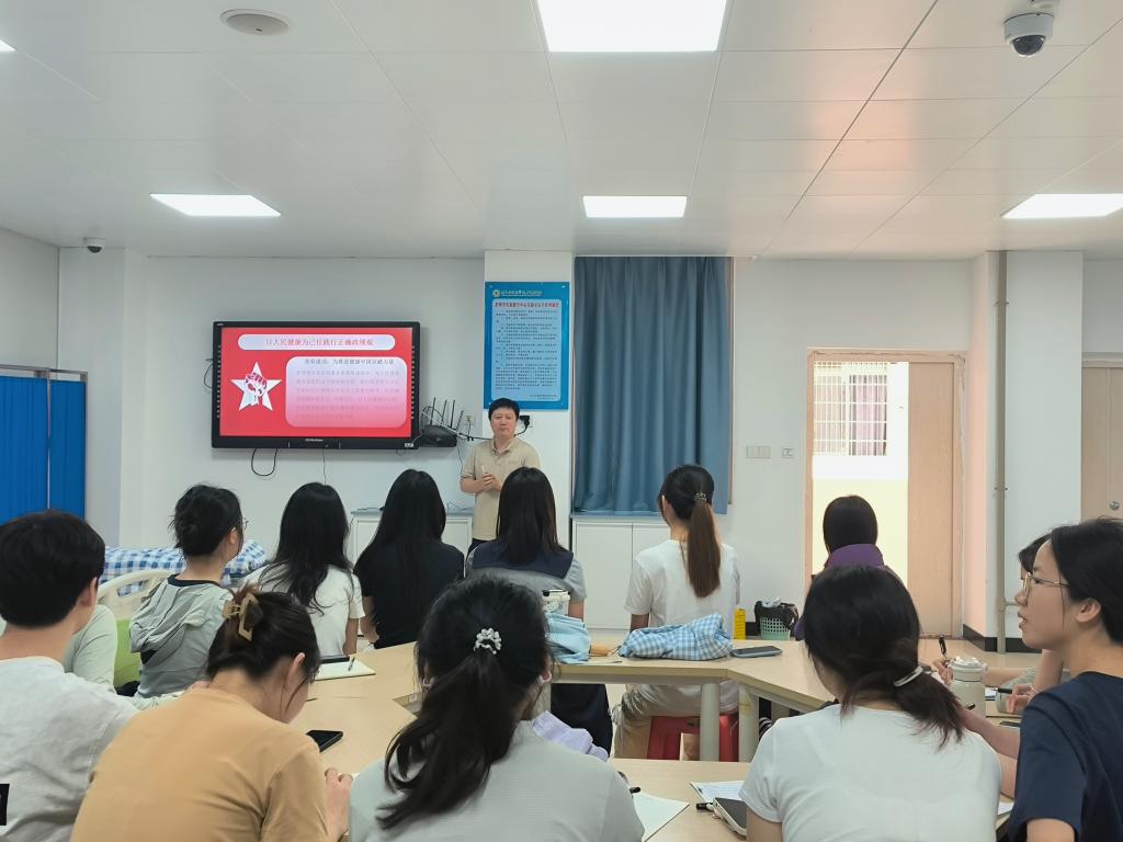 学习中,李运主同志围绕学习主题,从学习背景与意义、核心论述解读、护理学子的远大理想、践行路径与未来展望四个方面进行领学,带领支部党员深入解读经得起实践、人民、历史检验的实绩标准。结合护理专业特色,他指出,护理学子应树立远大理想,摒弃功利化追求,坚持以患者为中心,把患者康复与就医体验作为价值标尺,主动扎根基层、服务人民,在医疗卫生一线锤炼本领、务求实效。