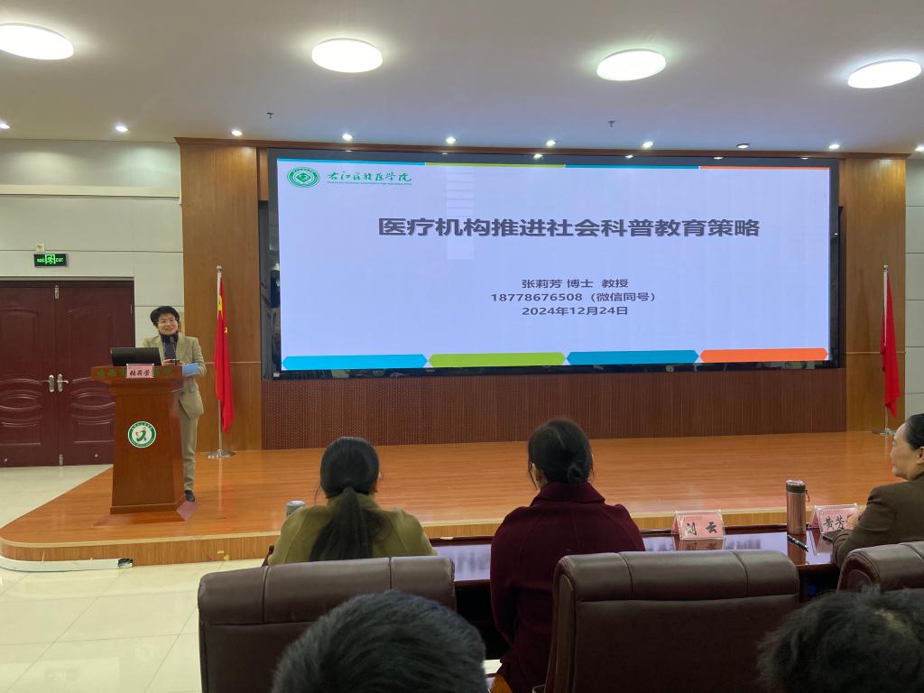 张莉芳院长围绕“医疗机构推进社会科普教育的策略”这一主题,指出医疗机构不仅是诊疗服务的提供者,更是社会健康科普的重要窗口,并强调医疗机构应注重多渠道、多形式开展科普教育,将专业的健康知识传播给更多的公众。
