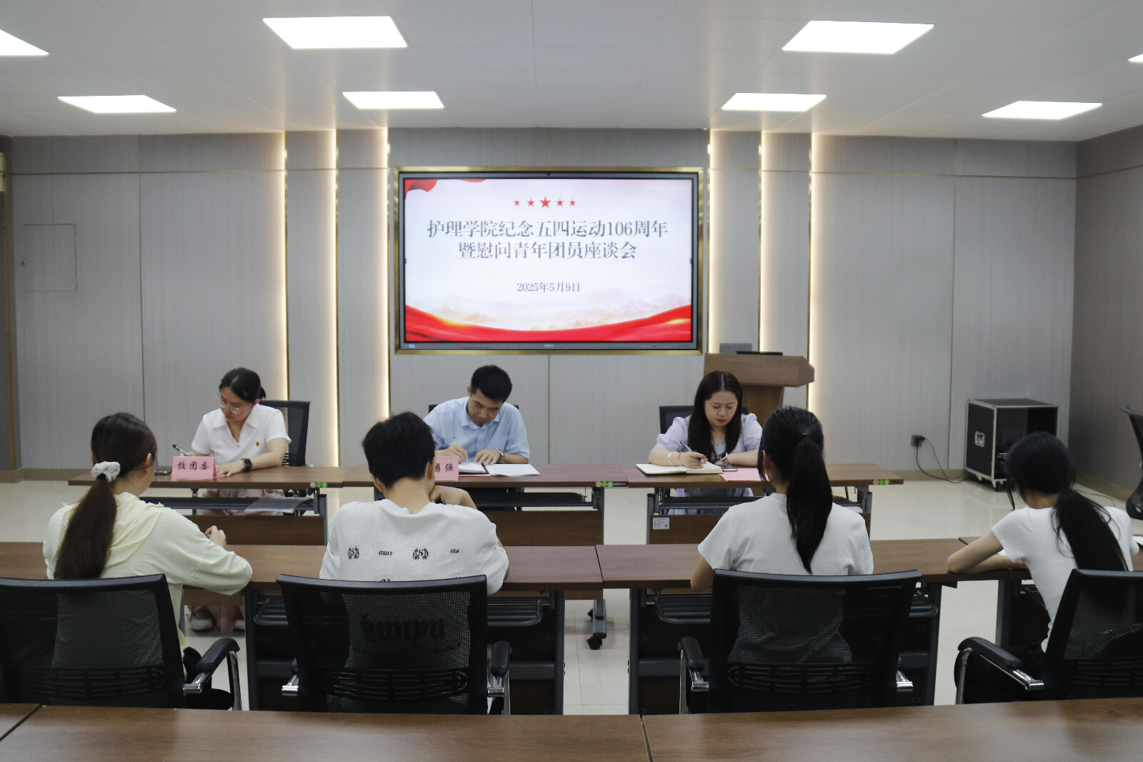 为进一步弘扬五四精神,激励青年团员在新时代的征程中奋勇前行,5月9日下午,护理学院在党员活动室成功举办了纪念五四运动106周年暨慰问青年团员座谈会,活动由校团委王长丽老师、护理学院党委副书记邱勇强老师、护理学院教师代表许萌杏老师及护理学院青年团员代表共同参与。