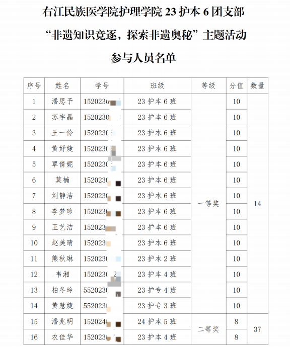 此次非遗知识竞赛活动,有效唤起了大学生对非遗保护的重视,也为非遗文化的传承与发展注入了青春力量,让非遗瑰宝在新时代焕发新活力。(图文/23护本6团支部 一审/麦伊 二审/钟敏锐 三审/黄上峰)