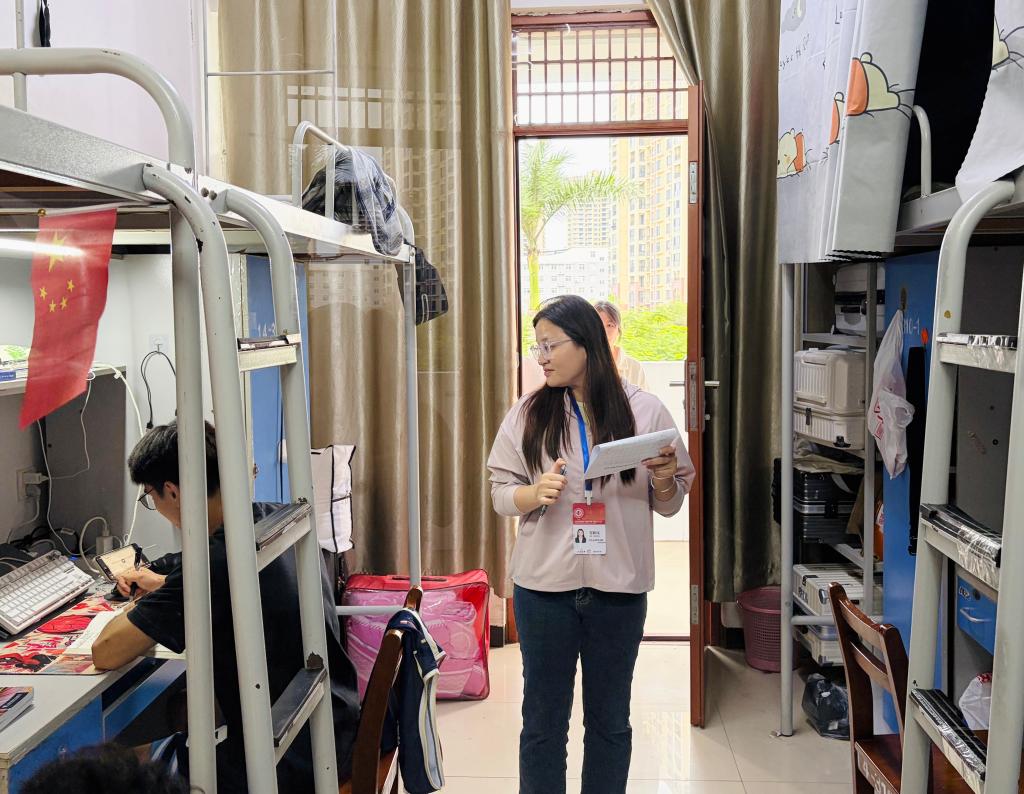 为有效防范基孔肯雅热等传染病,筑牢校园健康防线,全面提升同学们的内务素养与卫生意识,焕新宿舍文明面貌,护理学院学生会特此举办宿舍内务评比活动,于2025年10月22日18:00-19:00在百城校区与百东校区同步进行。本次活动由学院老师亲自领衔,百东校区由韦艳玲老师和许萌杏老师带领,百城校区由岑秋凤老师、韦欣言老师、梁玉宁老师带领,与学生会工作人员共同组织评比小组深入每一个宿舍,展开细致、公正的走访与评分。
