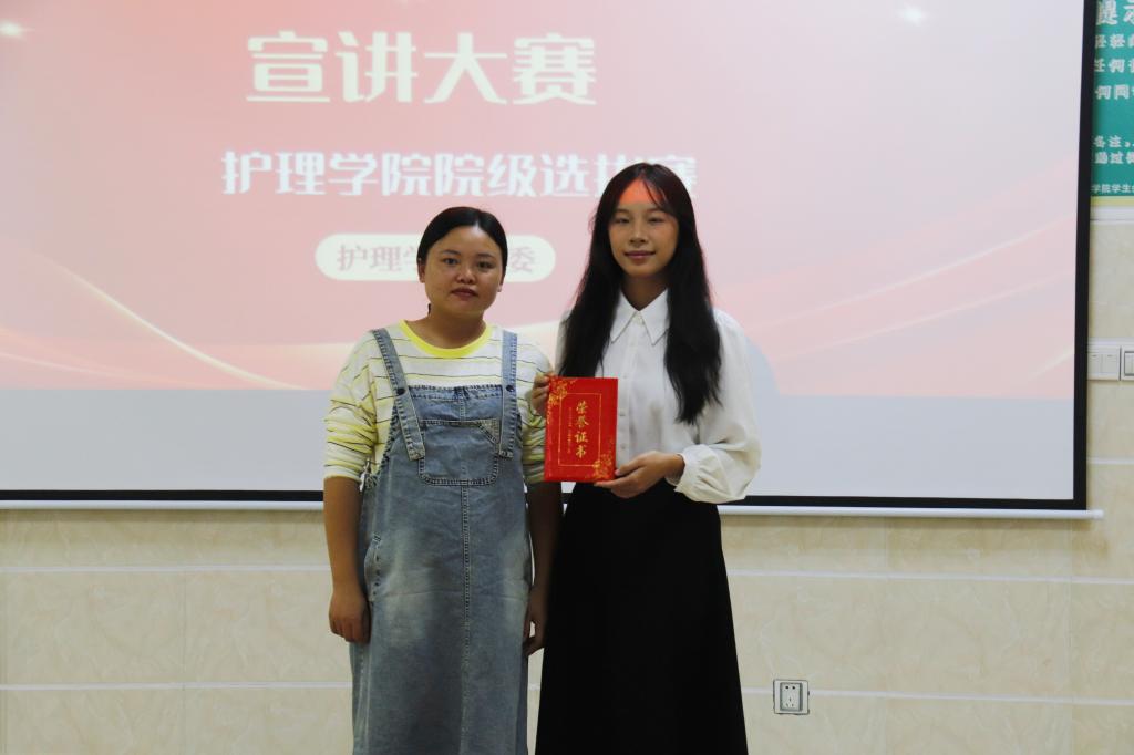 本次比赛紧扣“理论宣讲促成长,青春奋进新时代”主题,以创新理论宣讲为载体,充分展现学院学子在党的理论学习与实践锻炼中的创新活力和昂扬风采。 比赛现场,参赛选手们紧扣主题,结合护理专业特色与个人成长经历,围绕党的创新理论、党的二十大精神等重要内容,以生动的案例、真挚的情感和富有感召力的语言表达,对党的创新理论进行了深入浅出的阐释,充分展现了新时代护理专业学子筑牢信仰之基、投身时代征程的决心与担当。