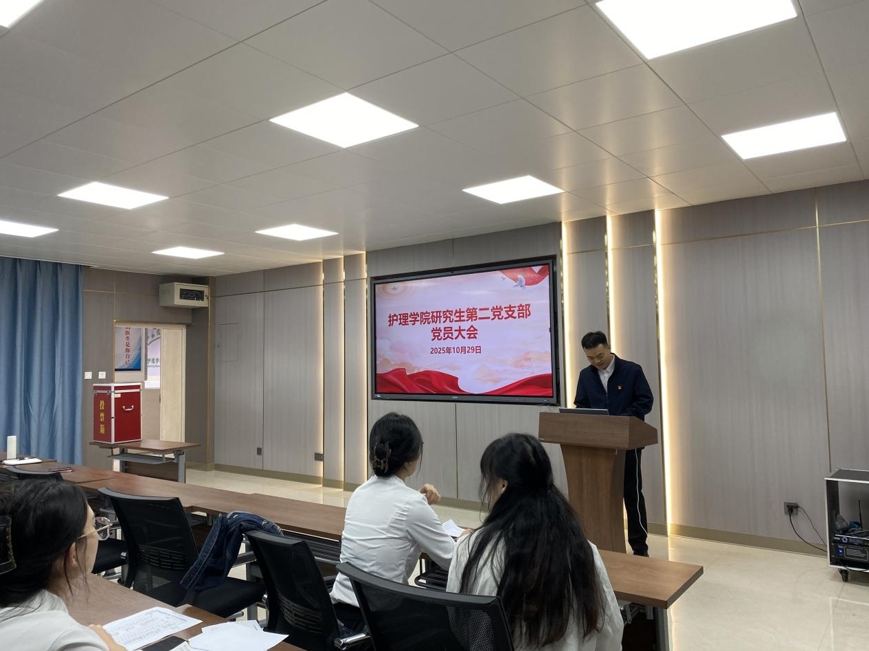 2025年10月29日上午,护理学院研究生第二党支部在护理学院8-211多媒体教室召开党员大会并进行换届。护理学院学院党委委员、党政办主任钟敏锐同志到会指导。大会严格依照《中国共产党章程》和有关选举规定进行,采取无记名投票、差额选举方式,选举产生新一届支部委员会。