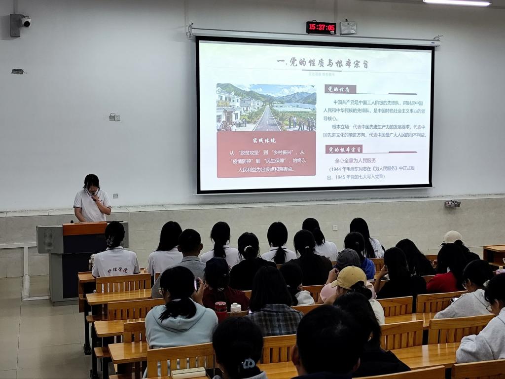 宣讲会上,张顺柔同学以深厚的理论功底和饱满的热情梳理了党的历史脉络、核心理论及方针政策;向参会同学们深入浅出地讲解了党的性质与宗旨、指导思想、组织体系与根本原则等基本知识,并进一步明确了入党基本要求与流程以及党员的权利和义务,让同学们进一步加深了对党的认识,增强了同学们理想信念。