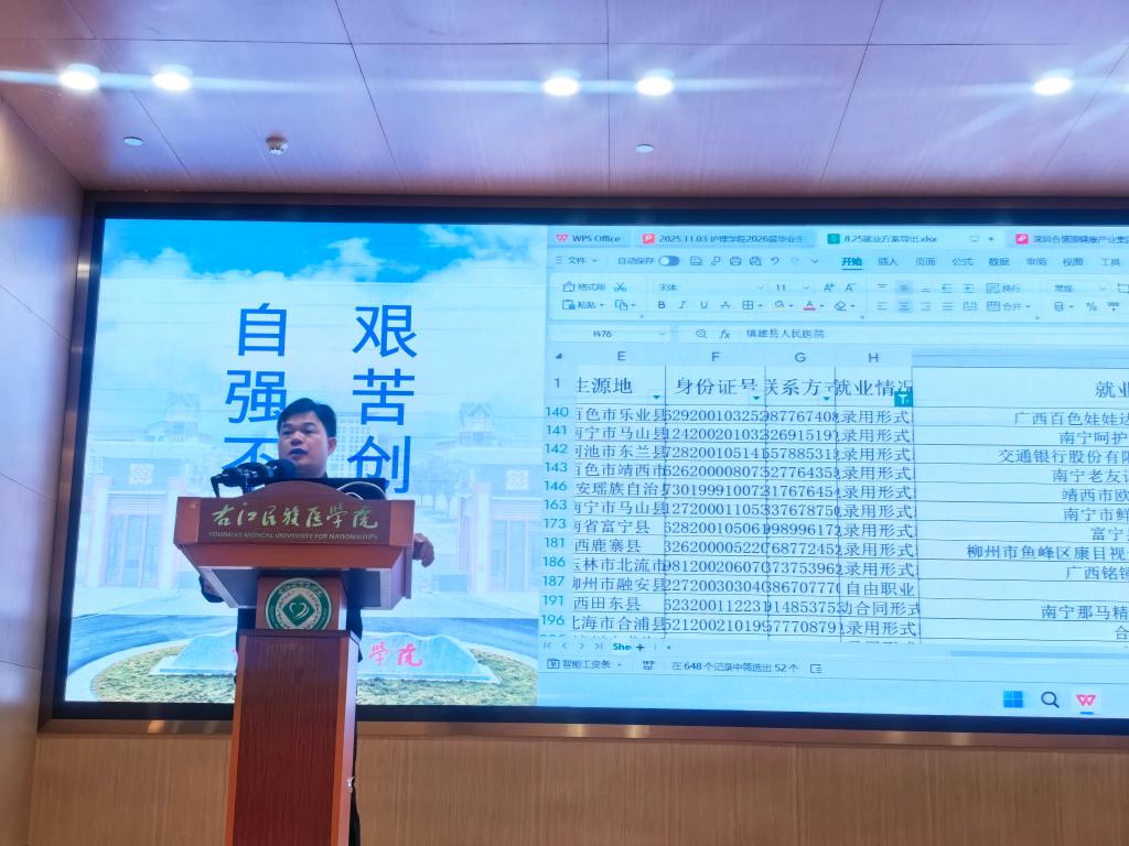 为积极应对当前复杂严峻的就业环境,拓宽毕业生职业发展视野,引导其精准锁定高潜力就业岗位,11月3日,护理学院分批次于国际会议中心二楼学术报告厅召开2026届毕业生就业动员大会。出席次会议的有护理学院党委书记黄上峰、副书记邱勇强、副院长麻新灵,护理学院2026届毕业生参加会议。
