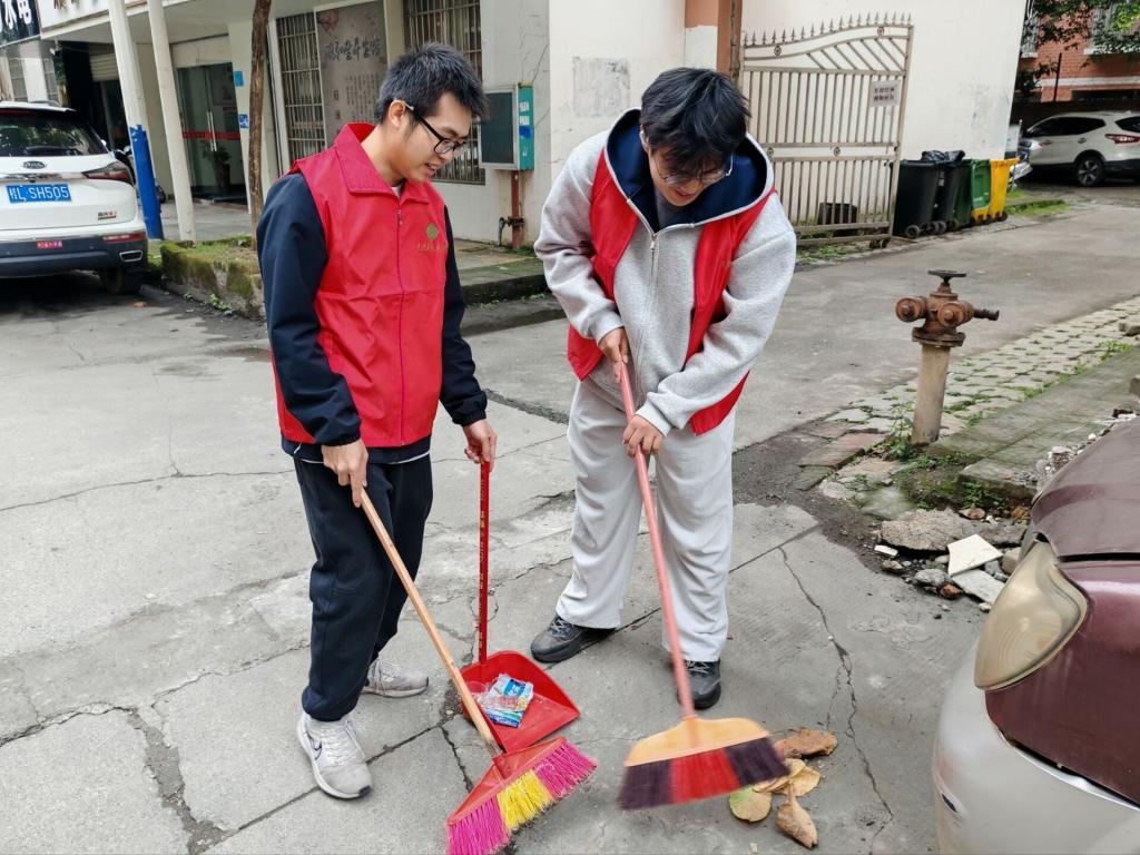 与此同时,社区环境整治行动同步开展,同学们对街区主干道、公共活动区域开展全方位清扫工作。他们分工明确、协作高效,重点清理落叶、纸屑等杂物,以实干笃行诠释志愿初心,用青春热忱焕新社区宜居底色,让服务精神在躬身实践中落地生根。