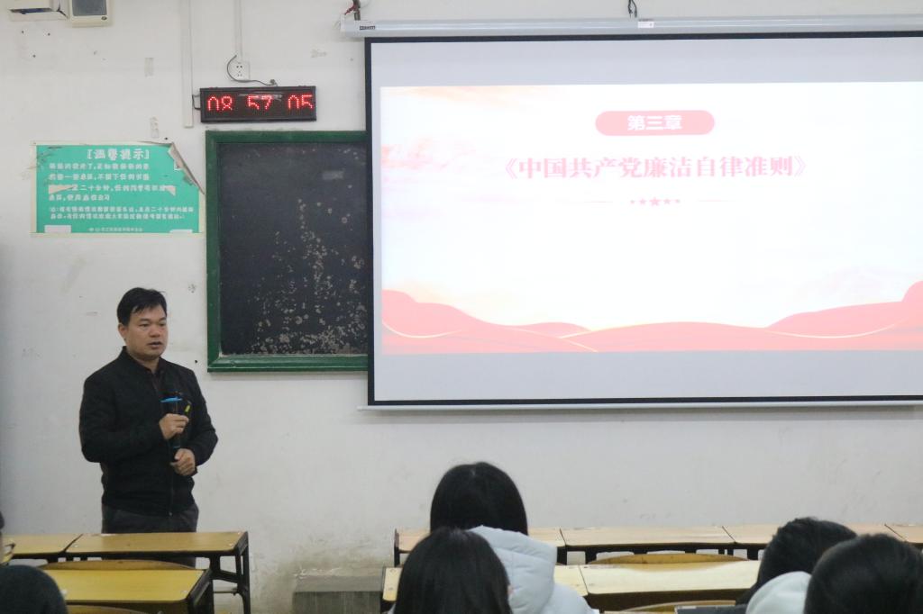 随后,黄上峰书记继续为学员们作专题辅导。他首先以“坚守党纪党规,加强党性修养”为题,结合《中国共产党章程》和《关于新形势下党内政治生活的若干准则》展开系统解读,并着重强调严守党的纪律规矩的重要性。学员们十分珍惜此次学习机会,专注听讲和细致记录,力求将理论知识内化于心、外化于行,为今后的实践行动打下坚实基础。
