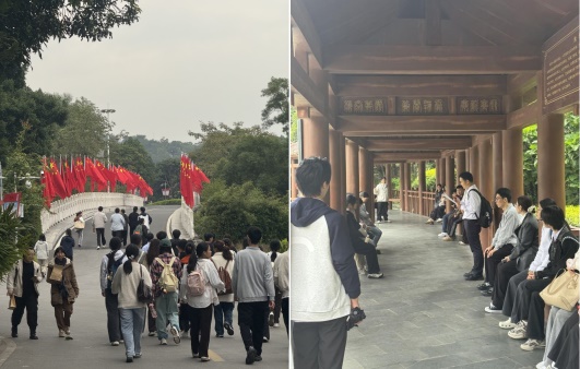 随后,师生们走过红军桥并在讲解员的引导、介绍下,在百色起义纪念馆开展现场教学。全体党员及25级研究生们系统学习了解百色起义波澜壮阔的历史进程,深刻领悟革命先辈坚定理想信念、敢于斗争与无私奉献的精神内涵。党员和研究生在沉浸式学习中接受精神滋养和价值引领,进一步提升政治素质与专业担当意识。