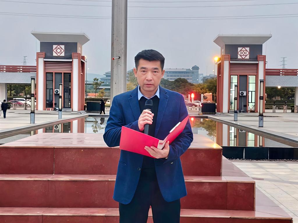 活动伊始,全体师生肃然伫立,目光庄重,五星红旗迎着晨曦熠熠生辉,伴随庄严的义勇军进行曲,缓缓升起。随后,学生代表黄馨漫同学发表国旗下讲话,她以真挚的话语,抒发了对护理事业的无限热爱,表现出对未来职业道路的坚定信念,展现着新时代医护青年的使命担当。接着,学院党委副书记邱勇强老师对本学期的学习工作进行简要总结。他结合学院在护理实践教学、志愿服务等领域的丰硕成果,向同学们发出积极参与“返家乡”基层医疗实践的号召,鼓励同学们以躬身实践强化专业认同,用实干担当践行社会责任。同时,邱副书记还从护理专业视角深入阐释理论学习与临床实践、家国情怀与职业素养的有机统一,并强调唯有将“人民至上、生命至上”融入每一次操作,把家国情怀转化为精准、安全的护理实践,方能以专业之力托举“健康中国”。