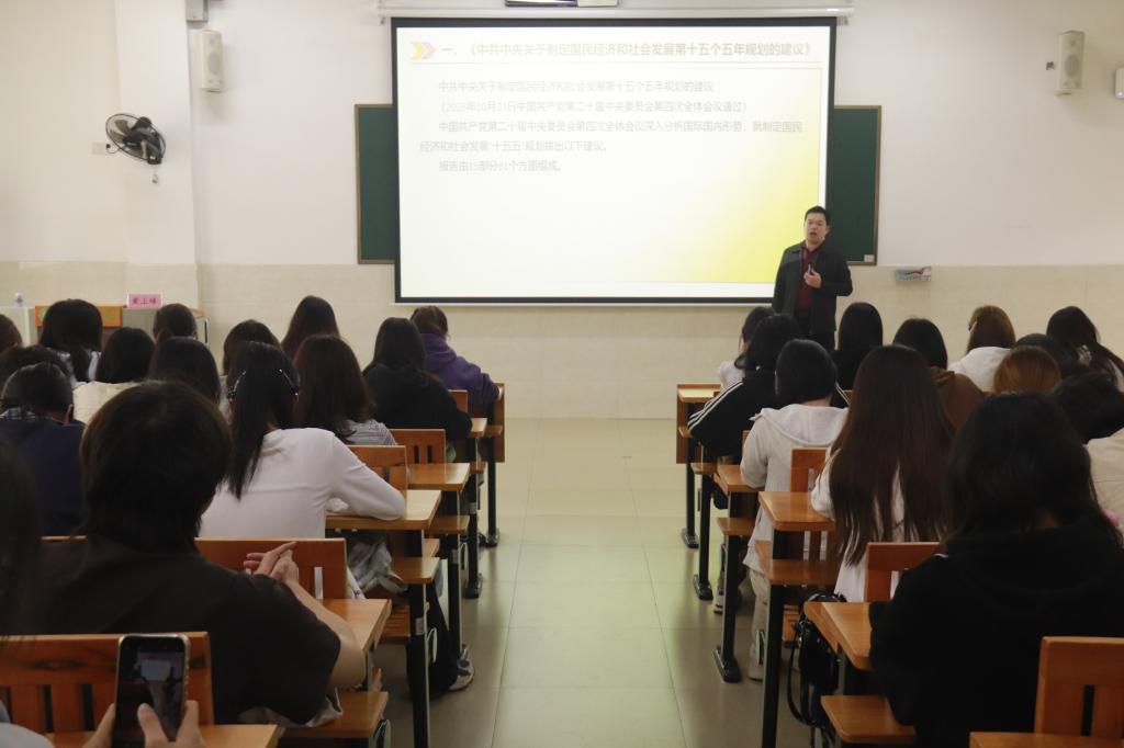 会议伊始,黄上峰老师紧扣护理学专业学生就业核心需求,将党的二十届四中全会精神与“十五五”卫生健康发展规划深度融合,为同学们精准锚定职业发展方向。他指出,党的二十届四中全会紧紧围绕健康中国建设,始终坚持以人民为中心的发展思想,在这一战略指引下,“十五五”时期护理行业人才需求将持续向基层医疗、老年康养、专科护理等重点领域扩容。在此基础上,黄上峰老师鼓励同学们紧跟健康中国战略布局,夯实专业技能,把握基层医疗与新兴赛道机遇,主动将个人成长融入国家医疗卫生事业发展大局,在学院精准护航下结合自身奋发努力,以专业力量守护民生健康。