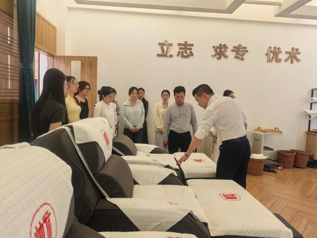 师生们参观了企业中医理疗室、员工培训基地,深入了解传统中医文化与现代健康管理服务的融合创新。在座谈会上,学生围绕工作制度、工作时长、薪资待遇、晋升路径、培训试工时长等进行详细交流了解。